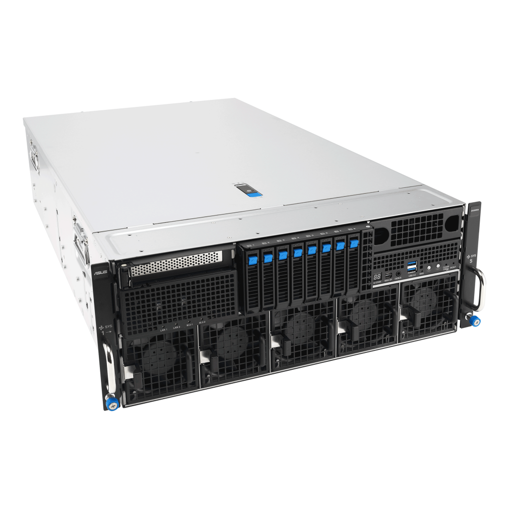 ASUS ESC8000-E12는 최신 인텔 제온 6 프로세서를 듀얼 소켓으로 탑재하여 최대 86코어의 강력한 연산 성능을 제공한다. 소켓당 최대 350W의 TDP를 지원하며, 32개의 DIMM 슬롯을 통해 최대 4TB의 DDR5 6400MHz 메모리를 구성할 수 있어 대규모 데이터 처리와 복잡한 AI 모델 학습에 최적화된 환경을 제공한다.